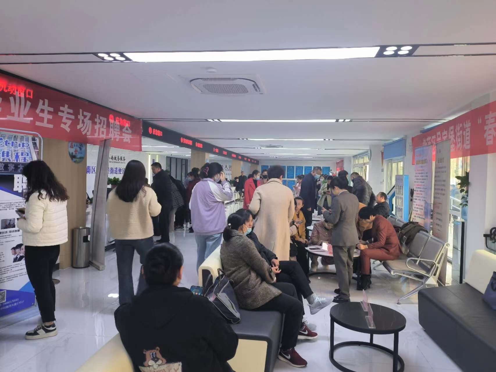 山东省济南市槐荫区吴家堡街道清河源社区新时代文明实践站组织辖区居民开展招聘活动!社区组织未就业居民区参加招聘会