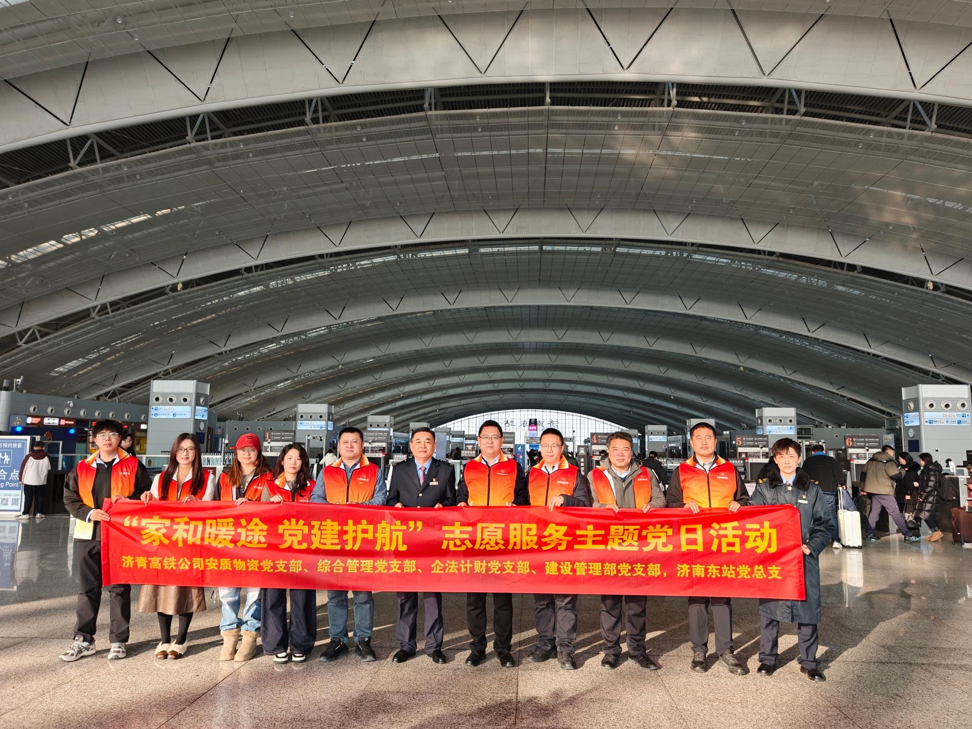 为践行“人民铁路为人民”宗旨,弘扬公司“家和同心”志愿服务精神,济青高铁公司工会将组织志愿者在济南东站开展“家和”暖途志愿行活动,为旅客提供咨询引导、重点帮扶等暖心服务,传递高铁出行的“家”式温暖,展现企业责任担当与职工良好风貌。