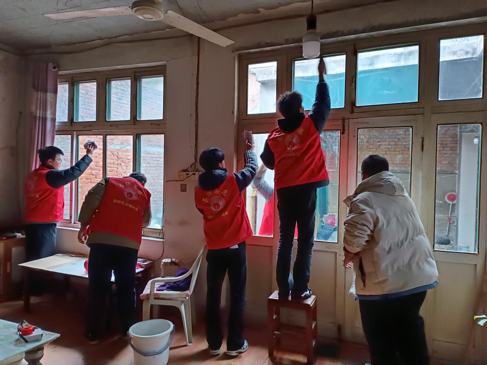 2026年1月17,长缨组织广大志愿者深入群众家中开展爱在四季特别计划为100户困难家庭送温暖系列活动。给群众清扫家庭卫生、排查消除家庭安全隐患、免费维修家庭电器、电路、水管、取暖等志愿服务。