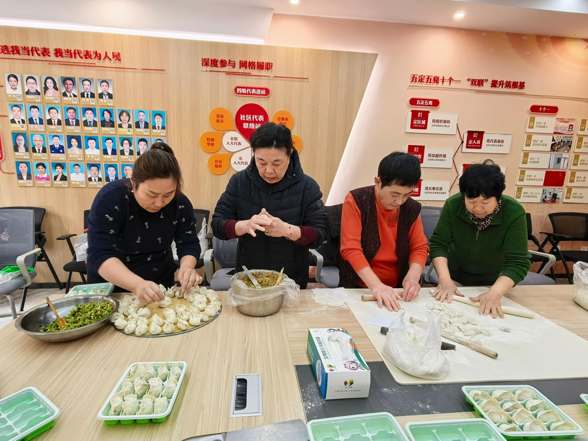 杆石桥街道乐山小区社区联合天工日间照料中心开展冬至包“廉”心饺 民族同心一家亲志愿服务活动。组织社区党员、老年人各族居民一起包饺子话家风。