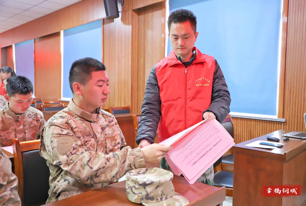与此同时区退役军人事务局“青春戎光”志愿服务队还向新兵们发放了涉及立功受奖送喜报、退役安置政策等内容的宣传明白纸,帮助他们了解相关政策、安心服役,真正做到“入伍有保障、服役有支持、退役有依靠”。