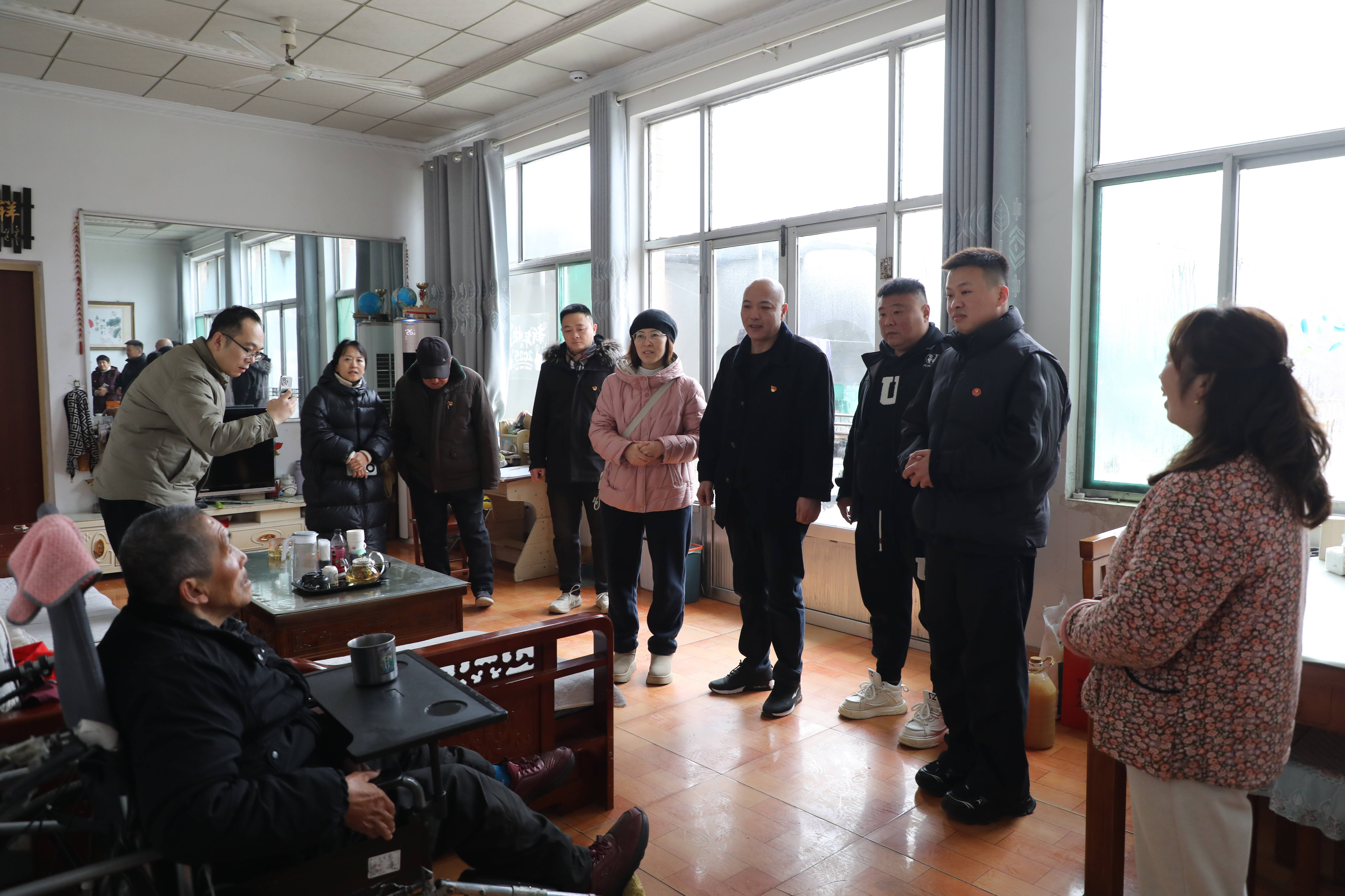 座谈会后,慰问活动正式拉开帷幕。在管理区和村居负责同志的协助下,孙家军带领志愿者们有条不紊地为20位困难群众和老年人送上了精心准备的慰问礼品,包括面粉、食用油、德州扒鸡、春联等,每一份礼品都承载着对家乡父老的牵挂与祝福。考虑到部分行动不便的群众无法到达现场,管理区和村居负责同志与爱心队伍一起将慰问品送到他们家中。每到一户,大家都亲切地与群众唠家常,仔细询问他们的生活情况和身体状况,殷切叮嘱他们寒冬时节注意保暖、保重身体,让关爱真正落到实处。