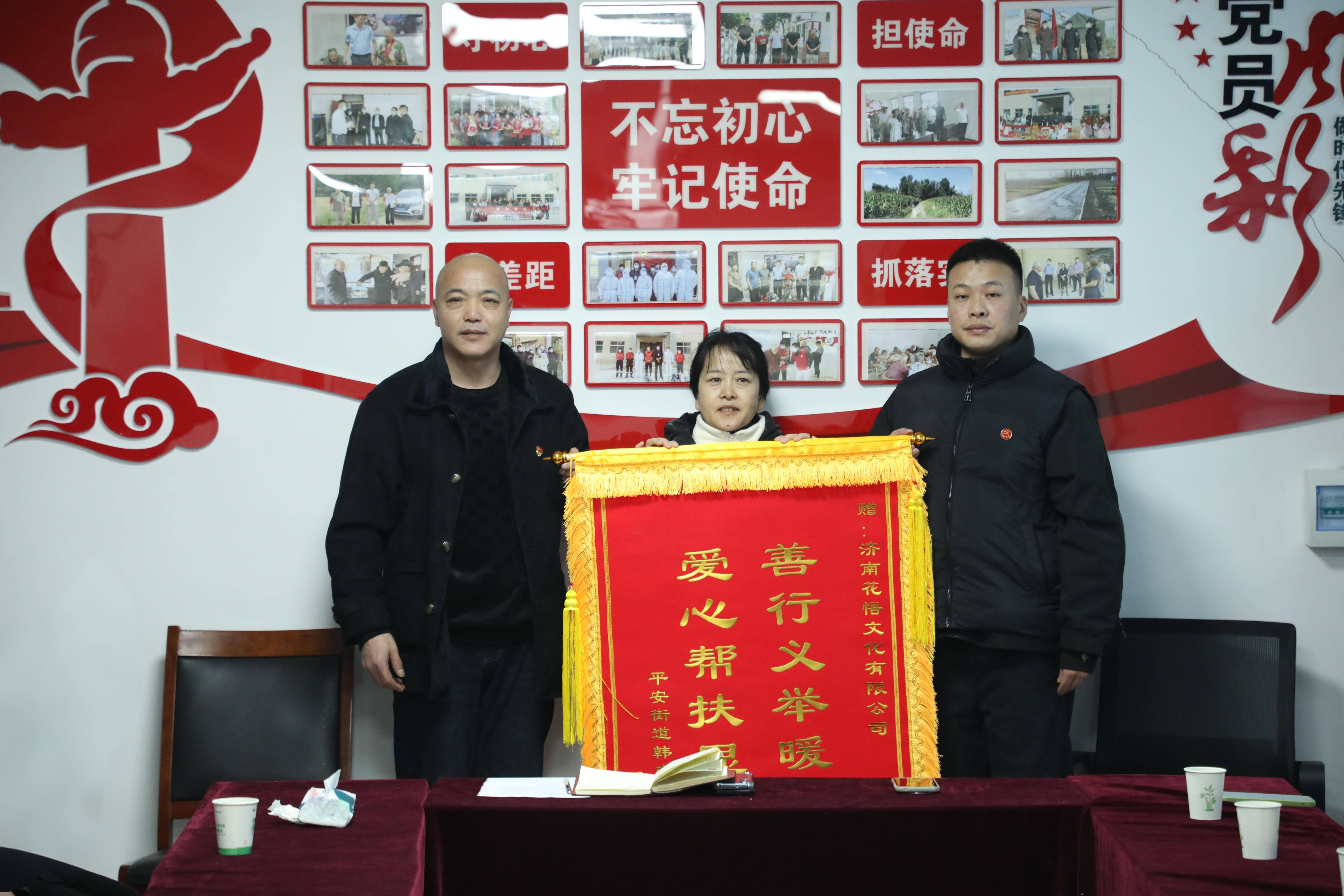 活动开始前,管理区和村居负责同志与孙家军召开了简短的座谈会。会上,大家亲切交流了韩庄村的发展近况,孙家军分享了自己在外创业的经历,并表达了反哺家乡、关爱邻里的真挚心愿。为感谢孙家军的暖心善举,管理区和村居负责同志向他送上了印有“善行义举暖民心,爱心帮扶显真情”的锦旗,对他致富不忘家乡、关爱困难群体的行为给予高度赞扬。