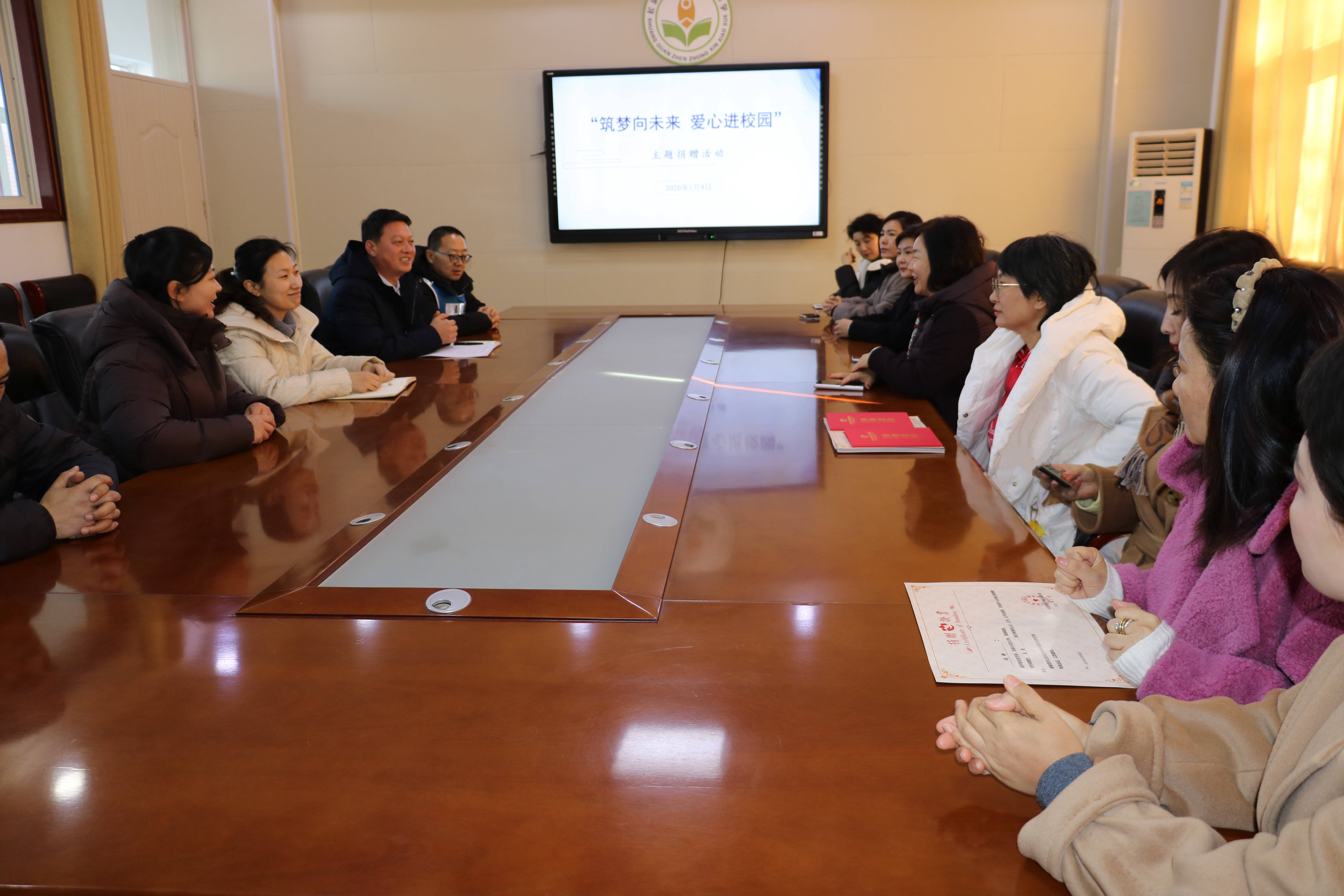冬日暖阳照校园,爱心捐赠暖人心。1月8日,山东省女企业家商会公益慈善部部长魏静一行与山东省乡村振兴基金会简基金走进双泉中心小学,开“筑梦向未来 爱心进校园”主题捐赠活动,为学生们送来无人机设备、科学实验器材等爱心物资,以实际行动践行社会责任,助力乡村教育高质量发展。镇领导杨宁,双泉教育总支书记、双泉中心小学校长孟凯参加活动。