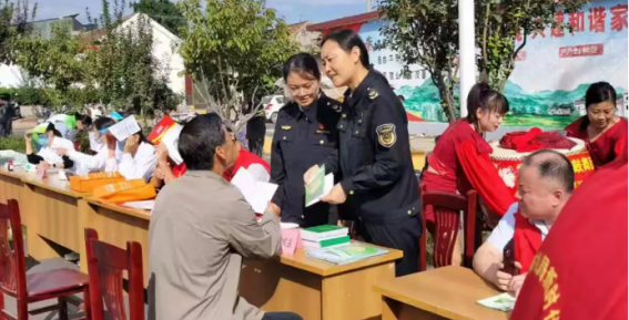 9月26日,章丘区“文明实践大篷车”走进曹范街道高家埠村,曹范市场监管所展位为群众提供普法宣传、消费维权等便民惠民服务。曹范市场监管所志愿者们通过设立服务台、发